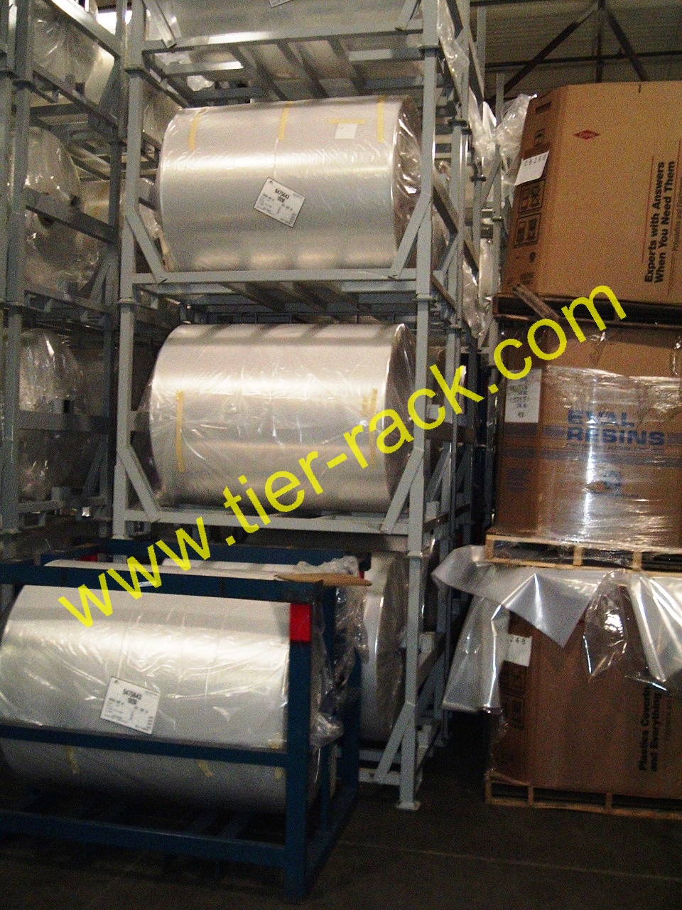 Does your business use or manufacture rolls of fabric, film, paper roll, carpet etc.? Odds are you have had your difficulties with their storage, or movement throughout your facility. "The beautiful thing about the Tier-Rack Suspended Roll Racks is that we not only protect our product, we can now stack five times the amount of rolls in one pallet position in our manufacturing facility" said the plant manager of one of North America's largest producers of nylon and film. The plant manager added "We are also using the portable roll racks for our product to be fed directly into our production process".