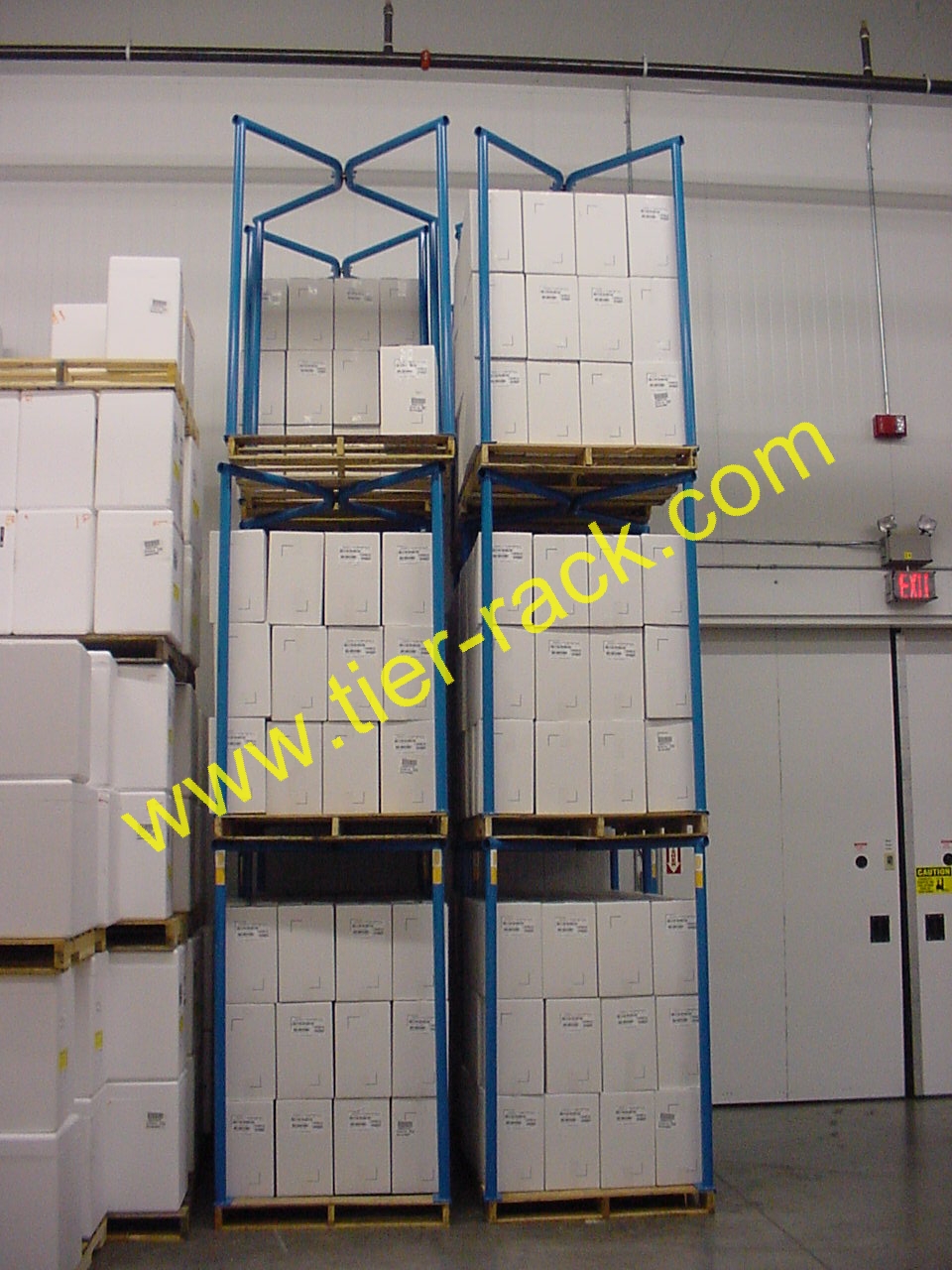Tier-Rack Corp has used their Tier-Rack storage systems to store tires, boxes, fabric, pipe, elecronics, bicycles, furniture, food, beverages, and almost any product that can be kept in a warehouse with their stack racks. Any company that uses pallets can use this product, which stacks frames on top of your existing wood pallets to create vertical space.These will allow a company to stack 3 to 5 loads of crushable of fragile products, as well as awkward, non-stackable product.